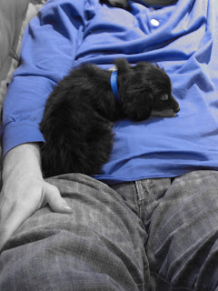So there you have it...I think Chris and I are starting to get the hang of this puppy thing. Thus fare I do not believe we have screwed him up too bad, but only time will tell. We really are struggling on potty training, so please send us your hints. It seems no matter how often we go out, he goes inside as soon as we come back. HOW IS THIS POSSIBLE! Now that he is 7 weeks old I hope that we can improve on this. Really that is our only beef with the little guy. He is wonderful, I wouldn't trade him for a thing.
